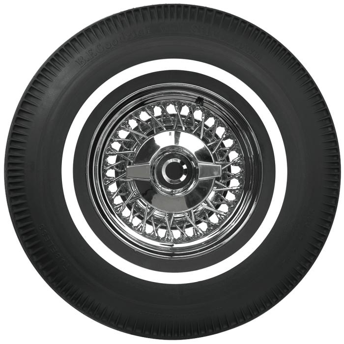 When your search for collector car tires calls for narrower whitewall tires from the sixties, Coker Tire Company has you covered with excellent period-correct bias ply tires. These premium BFGoodrich Bias Ply Pie Crust tires feature a genuine narrow whitewall design. The authentic tread design and sidewall markings instantly transport you and your car back to the golden age of freeway motoring (and when gas was cheap!) These beautiful pie crust tires are available in several sizes and are outstanding fitments for many 1960s model automobiles.