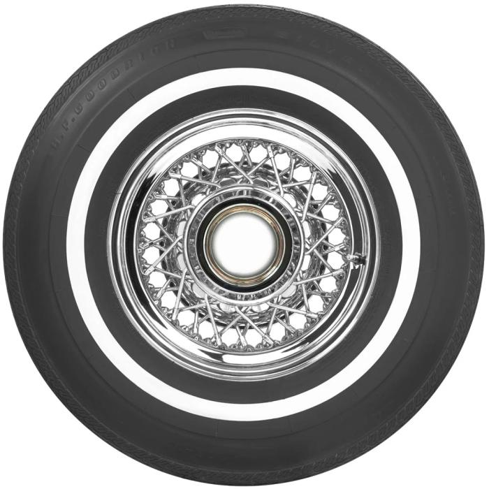 This product features a genuine narrow whitewall sidewall style. This means that the bright white rubber is added directly to the tire sidewall during initial construction of the carcass, resulting in a truly integrated, high-quality product after vulcanization. When we reference "narrow whitewall" tires, we typically mean a whitewall that measures less than two inches, but it can also mean a whitewall that does not reach all the way into the bead. Narrow whitewall tires are popular for many cars built in 1960's all the way into the 1990's.