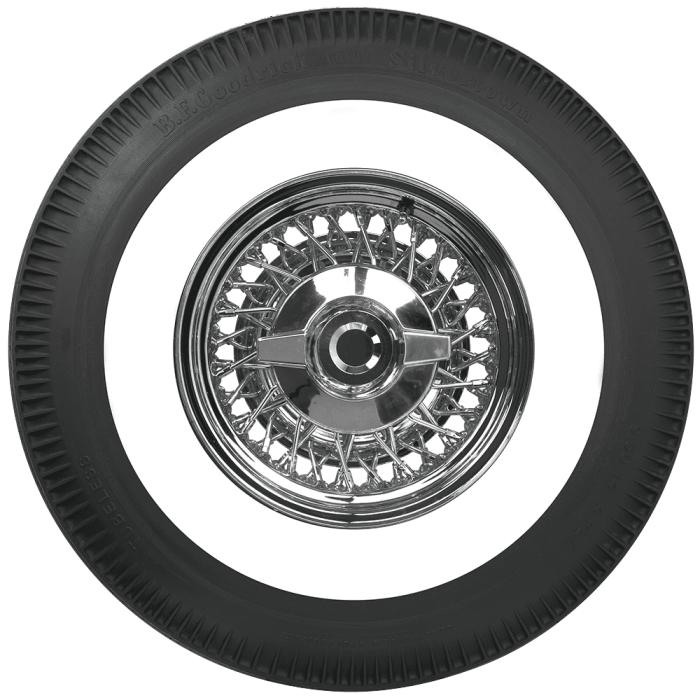 These beautiful classic BFG whitewall tires have stylish pie crust upper sidewalls and authentic tread designs. These tires are constructed as genuine whitewalls from the first step for a high quality finished product. BFGoodrich Bias Ply pie crust wide whitewall tires are also available with narrow whitewalls for later model classics.