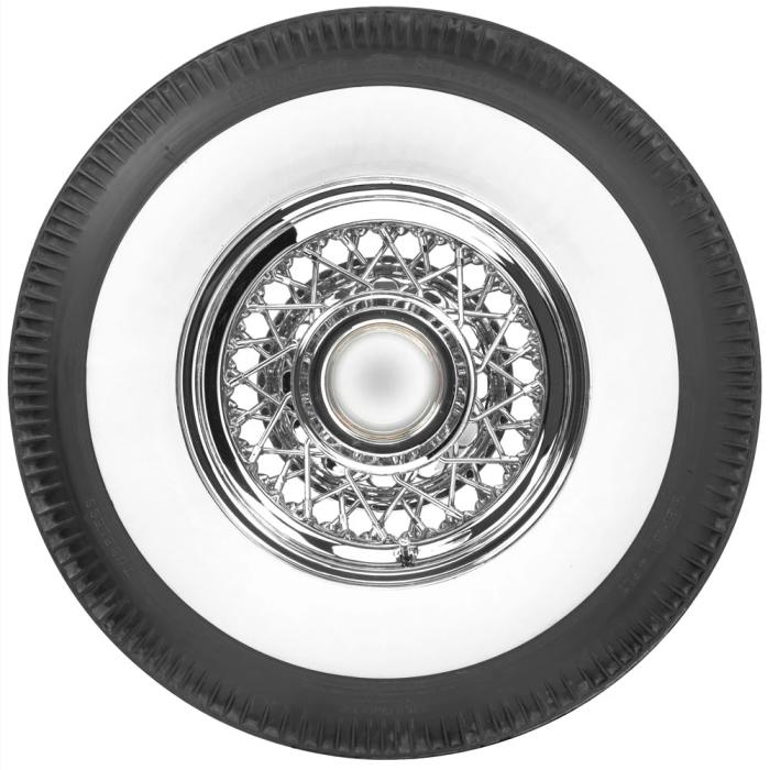 This product features a genuine wide whitewall sidewall style. This means that the bright white rubber is added directly to the tire sidewall during initial construction of the carcass, resulting in a truly integrated, high-quality product after vulcanization. Wide whitewall tires were a very popular choice from the 1930's through the end of the 1950's, and were eventually phased out of mainstream production by 1962. Originally, wide whitewall tires featured a bias ply construction, Coker Tire offers these tires in both original style bias ply and modern radial construction.