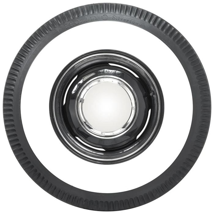 This product features a genuine wide whitewall sidewall style. This means that the bright white rubber is added directly to the tire sidewall during initial construction of the carcass, resulting in a truly integrated, high-quality product after vulcanization. Wide whitewall tires were a very popular choice from the 1930's through the end of the 1950's, and were eventually phased out of mainstream production by 1962. Originally, wide whitewall tires featured a bias ply construction, Coker Tire offers these tires in both original style bias ply and modern radial construction.