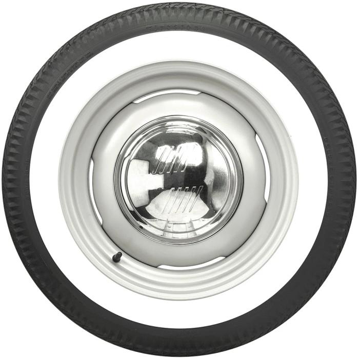 This product features a genuine wide whitewall sidewall style. This means that the bright white rubber is added directly to the tire sidewall during initial construction of the carcass, resulting in a truly integrated, high-quality product after vulcanization. Wide whitewall tires were a very popular choice from the 1930's through the end of the 1950's, and were eventually phased out of mainstream production by 1962. Originally, wide whitewall tires featured a bias ply construction, Coker Tire offers these tires in both original style bias ply and modern radial construction.