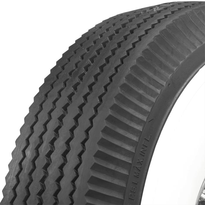 This product features a genuine wide whitewall sidewall style. This means that the bright white rubber is added directly to the tire sidewall during initial construction of the carcass, resulting in a truly integrated, high-quality product after vulcanization. Wide whitewall tires were a very popular choice from the 1930's through the end of the 1950's, and were eventually phased out of mainstream production by 1962. Originally, wide whitewall tires featured a bias ply construction, Coker Tire offers these tires in both original style bias ply and modern radial construction.