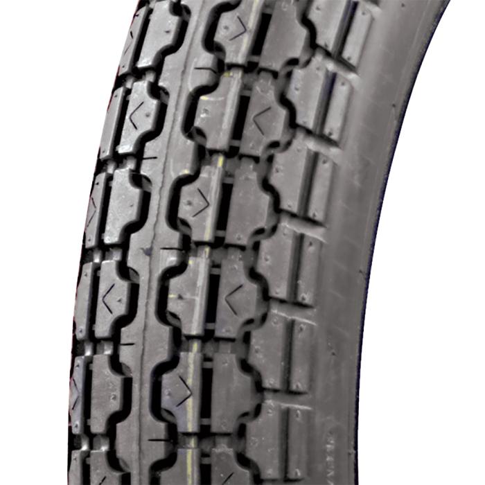 Firestone Vintage Motorcycle tires wear two hats these days. They're authentic and great for use in the restoration of vintage American motorcycles and they've become wildly popular with custom bike builders as well. The tires feature deep tread and smooth sidewall styling with raised Firestone markings. This 17 inch rear Firestone Vintage Motorcycle tire is an excellent tire for restored or custom motorcycles.