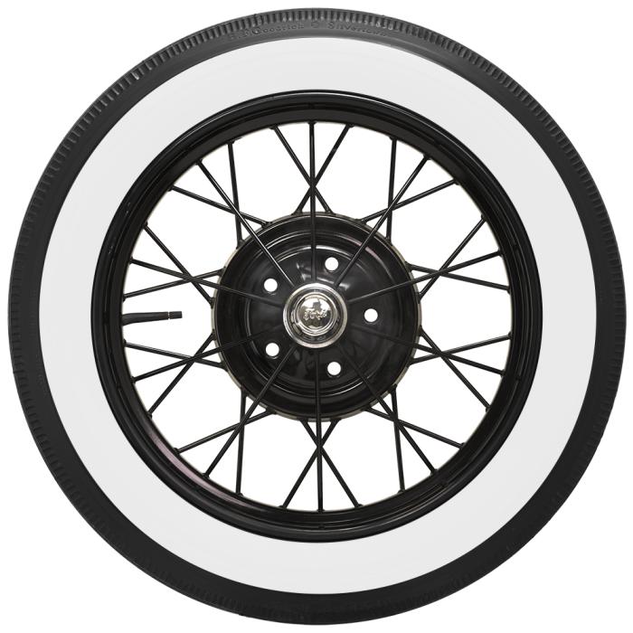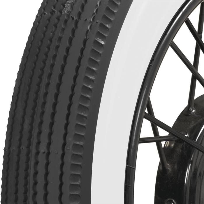 This product features a genuine wide whitewall sidewall style. This means that the bright white rubber is added directly to the tire sidewall during initial construction of the carcass, resulting in a truly integrated, high-quality product after vulcanization. Wide whitewall tires were a very popular choice from the 1930's through the end of the 1950's, and were eventually phased out of mainstream production by 1962. Originally, wide whitewall tires featured a bias ply construction, Coker Tire offers these tires in both original style bias ply and modern radial construction.