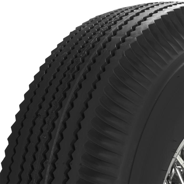 Coker Tire Company offers a huge selection of authentic Firestone Classic tires. Firestone has the largest line of classic tires in the world. These Firestone Bias Ply tires boast the original Firestone Zig Zag tread pattern in blackwall. They're made in the original molds using modern materials in the USA. Available in 15- to 20-inch sizes for literally hundreds of classic applications. This Firestone Classic tire has a beautifully detailed pie crust upper sidewall.