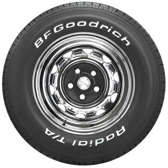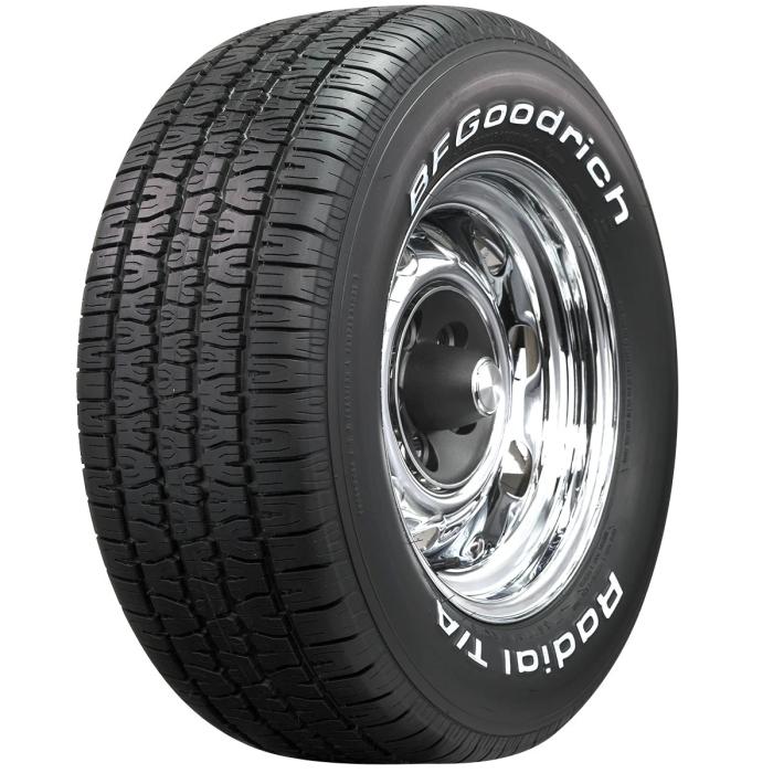 BFGoodrich Radial T/A tires are perfect for muscle cars and classics that call for a raised white letter sidewall. With the legendary V-Bloc tread design and S (112 MPH) speed rating, they are built to perform. DOT and ECE (European Union) approved. With 40 years of heritage, the BFGoodrich Radial TA product line earns the title of the ultimate muscle car tire. We have thousands of Radial T/A tires on hand, so you can get your tires quick, and get your muscle car back on the road, where it belongs! Please note that dimensions listed tread width, section width and overall diameter are non-scientific and based on an inflated tire, mounted on a wheel. Dimensions may vary due to rim width and inflation pressure.