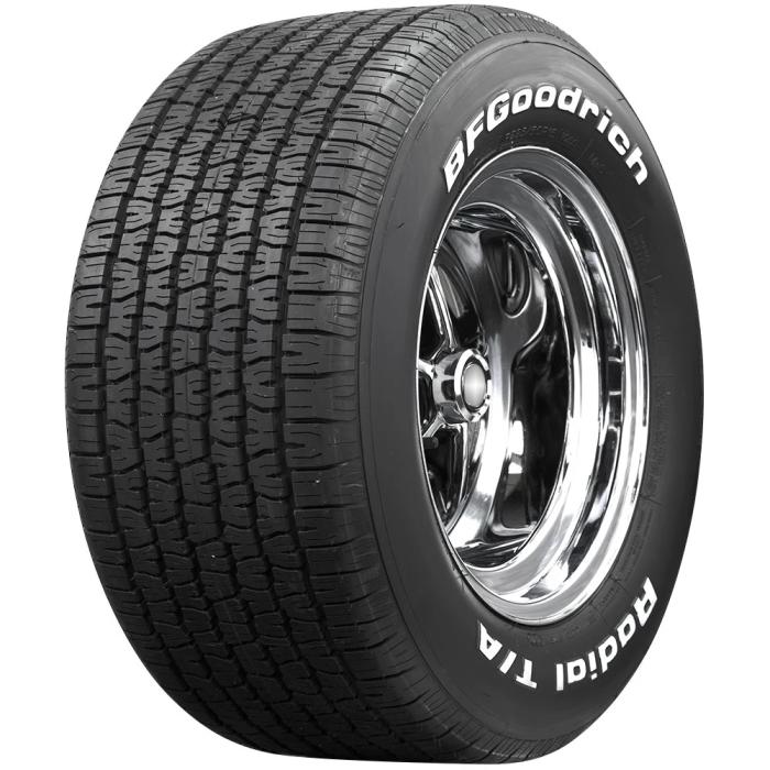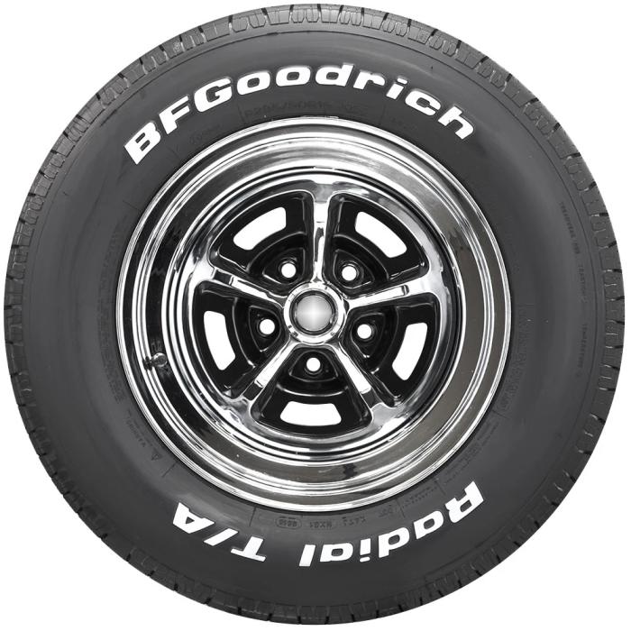 BFGoodrich Radial T/A tires are perfect for muscle cars and classics that call for a raised white letter sidewall. With the legendary V-Bloc tread design and S (112 MPH) speed rating, they are built to perform. DOT and ECE (European Union) approved. With 40 years of heritage, the BFGoodrich Radial TA product line earns the title of the ultimate muscle car tire. We have thousands of Radial T/A tires on hand, so you can get your tires quick, and get your muscle car back on the road, where it belongs! Please note that dimensions listed tread width, section width and overall diameter are non-scientific and based on an inflated tire, mounted on a wheel. Dimensions may vary due to rim width and inflation pressure.