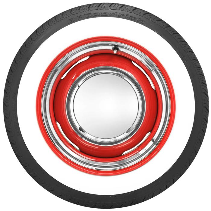 This product features a genuine wide whitewall sidewall style. This means that the bright white rubber is added directly to the tire sidewall during initial construction of the carcass, resulting in a truly integrated, high-quality product after vulcanization. Wide whitewall tires were a very popular choice from the 1930's through the end of the 1950's, and were eventually phased out of mainstream production by 1962. Originally, wide whitewall tires featured a bias ply construction, Coker Tire offers these tires in both original style bias ply and modern radial construction.