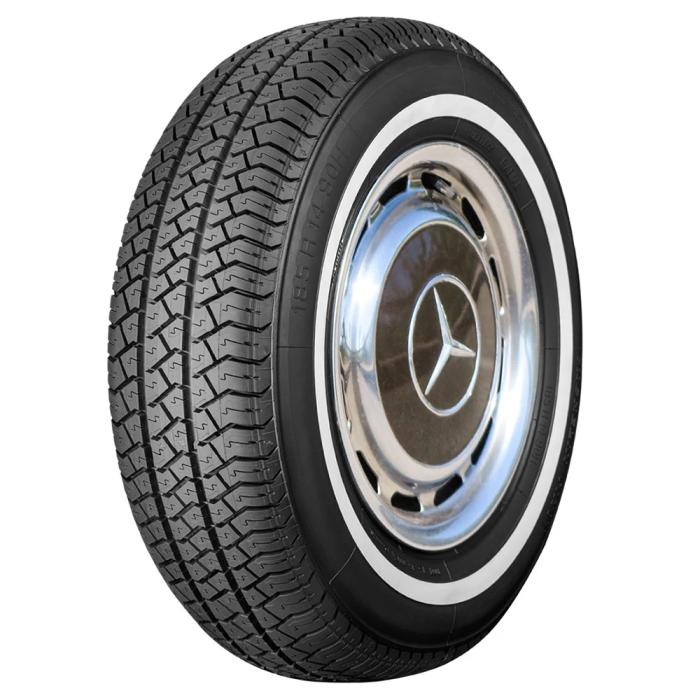 The Michelin MXV 185HR14 whitewall radial is a popular tire for vintage European cars, with OE Fitments for 1961 through 1971 Mercedes Benz 230, 250 and 300 series models. This tire features a .79-inch whitewall and the modern radial construction offers excellent grip in all environments, and a long tread life. The 185HR14 sizing designates a 14-inch wheel fitment and an H Speed rating for safe operation and performance on today's highways. The Michelin MXV radial features a classic tread pattern and vintage sidewall markings for the ultimate period correct look.Popular on: 1966-1972, Mercedes Benz (W108)